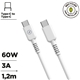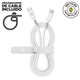 Cable para carga y transferencia de datos con conector Tipo C a Tipo C, 3A transferencia rápida, 1,2m de longitud, en color blanco y 100% reciclable. Con un diseño patentado y homologado con el certificado CRS, conforme son productos reciclables y hechos con productos reciclados. Carga tus dispositivos cuidando el planeta en el proceso, y llévate de regalo un organizador de cables gratuito.