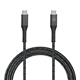 Cable para carga y transferencia de datos con conector Tipo C a Tipo C, 5A transferencia rápida, 1.2m de longitud, en color negro, 100% reciclable y fabricado con materiales reciclados de origen certificado RCS - RECYCLED CLAIM STANDARD.