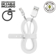 Cable para carga y transferencia de datos con conector USB a Tipo C, 3A transferencia rápida, 3m de longitud, en color blanco y 100% reciclable. Con un diseño patentado y homologado con el certificado CRS, conforme son productos reciclables y hechos con productos reciclados. Carga tus dispositivos cuidando el planeta en el proceso, y llévate de regalo un organizador de cables gratuito.