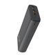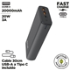 Batería externa de 20000 mAh de color negro de muvit for change. Esta Power Bank dispone un 2 puerto USB A y está hecha con materiales reciclados y reciclables y batería de litio. Incorpora un cable USB-C de 30 cm de TPE reciclado.