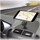 Soporte de coche universal muvit, con adhesivo para salpicadero y cabeza rotativa de 360°, de color negro. El móvil se sujeta al soporte mediante imán magnético.